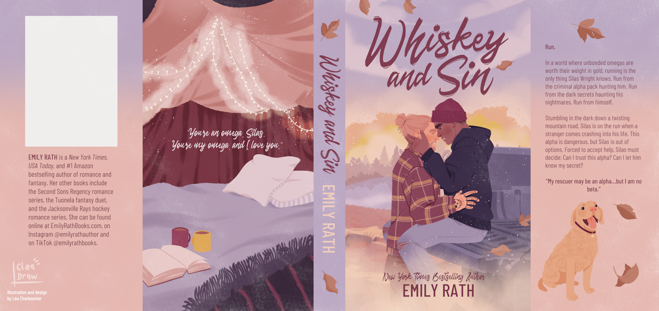 Art and design for the official cover of Emily Rath's novel Whiskey & Sin 2025. Self Published