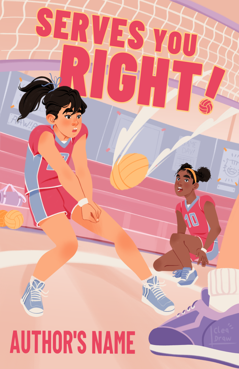 Personal Work 2025 Cover and design for a made up Middle Grade Novel's called Serves You Right!
