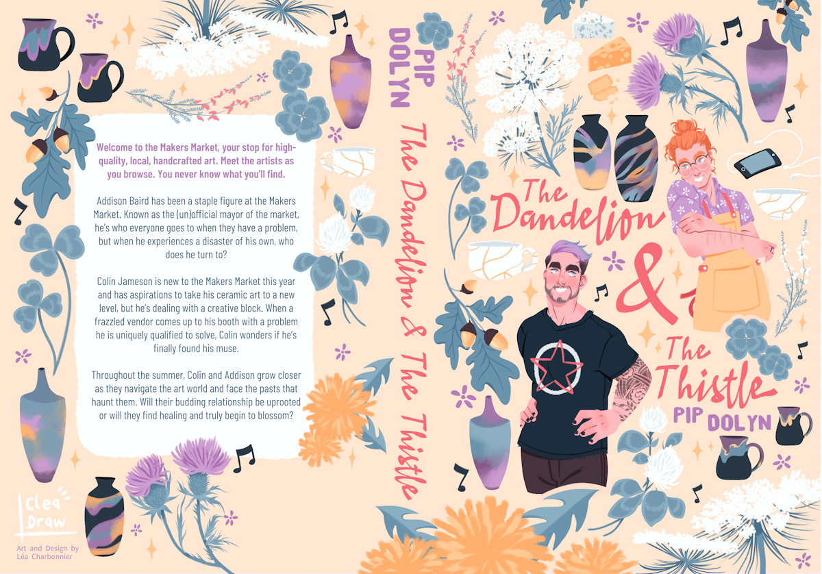 Art and design for the official cover of Pip Dolyn's novel The Dandelion & The Thistle 2025. Self Published