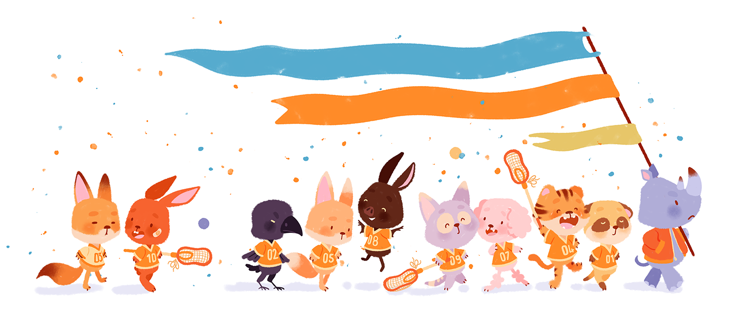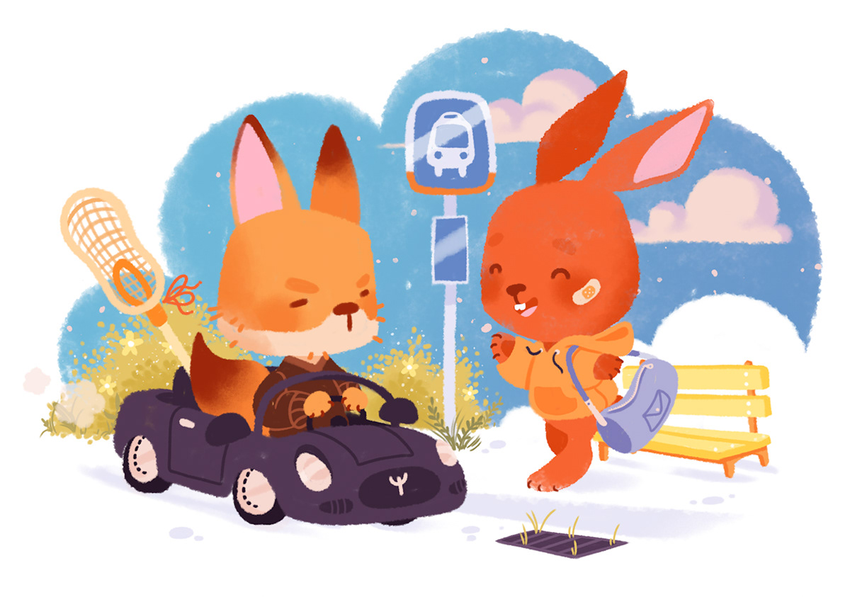 Personal work 2023 Illustration Inspired by "The Foxhole Court" by Nora Sakavic but in a Kid Book style with Anthropomorphic Animals.